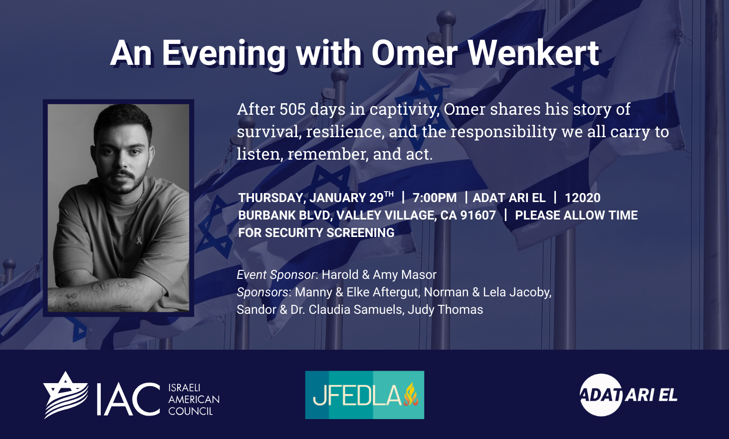 Join us for a powerful evening with Omer Wenkert as he shares his story of survival, resilience, and the responsibility we all carry to listen, remember, and act.